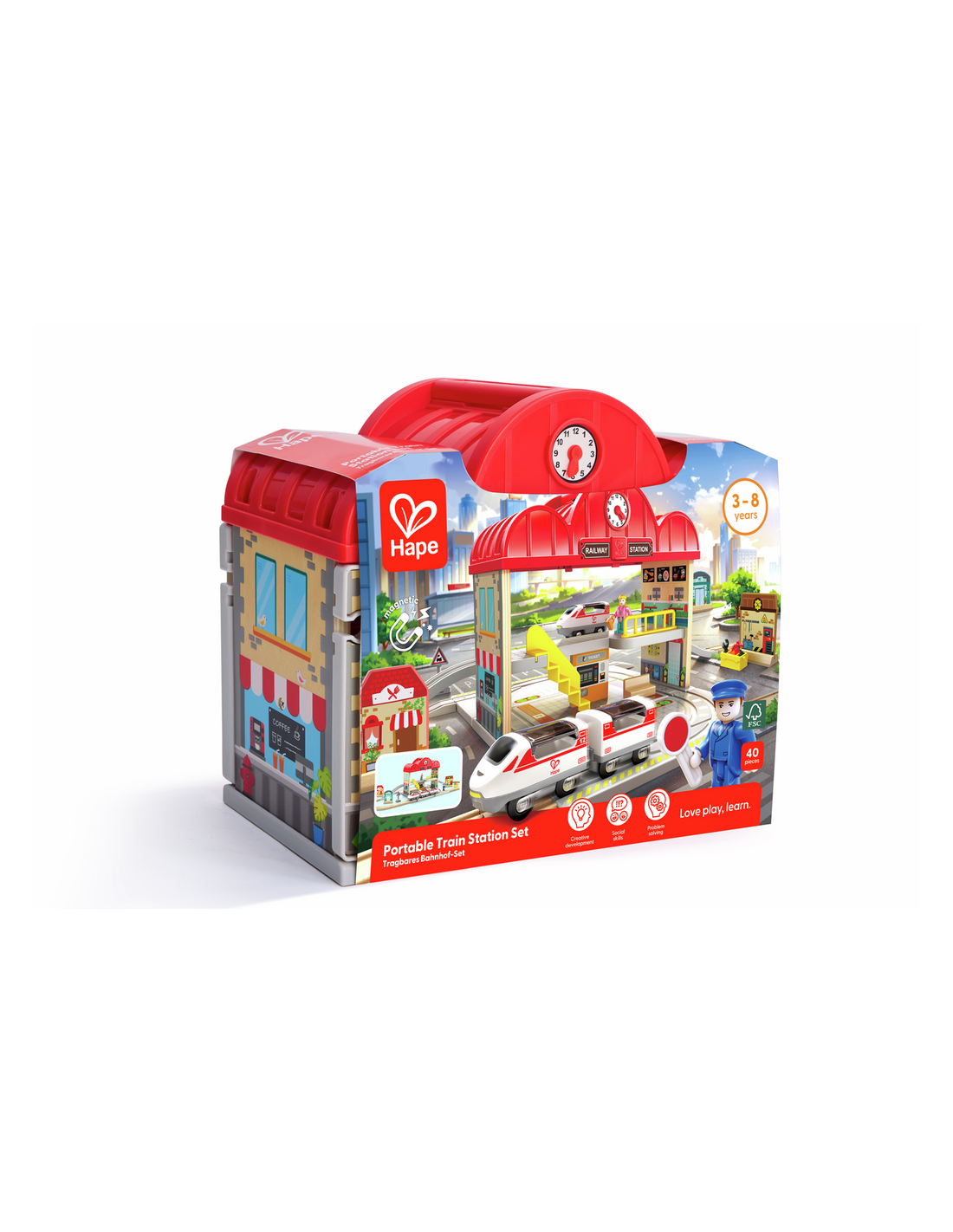 ¡La diversión sobre raíles está a punto de empezar con el Set de Estación de Tren Portátil de Hape! Este set de juego, pensado para aprender jugando, invita a los niños a dar rienda suelta a la imaginación mientras desarrollan su capacidad de pensar y resolver retos en el apasionante mundo ferroviario. Su estación compacta y fácil de transportar permite disfrutar del juego en cualquier momento y lugar.