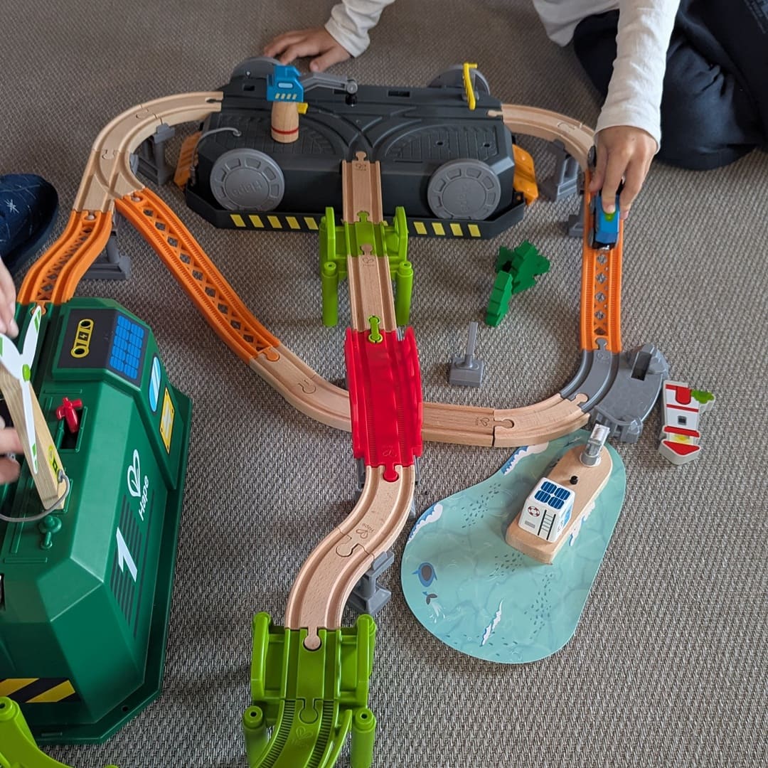 Las vías pueden reorganizarse y ampliarse con facilidad, permitiendo crear recorridos diferentes y nuevas historias en cada sesión de juego.