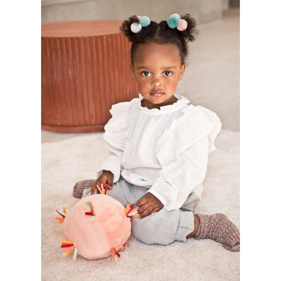 Igual que la chispeante y dinámica Stella la cervatilla, esta bola de actividades musical parece recién salida de un número de pompom girls. Con sus múltiples sonidos, su suavidad y sus alegres colores, ¡los bebés no se separarán de ella! Esta pelota sensorial rosa de tela supersuave, con una divertida Stella la cervatilla en lo alto, lleva unas cintas multicolores pensadas para estimular la motricidad fina. La bola lleva dentro un caja musical que estimula el sentido del oído. Con el botón de la caja, se puede decidir activar o no los sonidos en todo momento. Es fácil de manipular con sus manitas y estimulará los sentidos de los más pequeños con sus distintos materiales y sonidos. Además, los pequeños podrán utilizar esta pelota como balón de fútbol o bola de béisbol con total seguridad. Esta bola de actividad musical está pensada para niños a partir de 6 meses. Se puede lavar a máquina después de sacar la cajita de música.